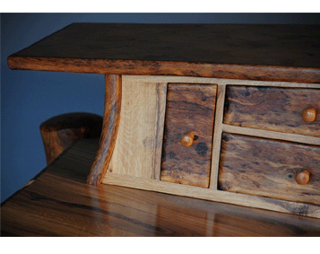 Writing Desk - The Least of Thesedimensions:78" x 44" x 39 ½ " high wood:Scrub Oak description:The Least of These is a writing desk made from scrub oak, the “least” of the mighty oaks. It is a fluid piece displaying various aspects of the lowly Gambel Oak including all of its many natural flaws, which I prefer to call features.