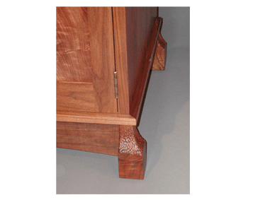 Gun Cabinetdimensions:77"W x 85"H x 22"D wood:Walnut description:Arts & Crafts style. Solid walnut with door panels and friezes contrasting crotch walnut. This piece houses 12 rifles. Door pulls fabricated from empty cartridge casings. Upper doors sliding clear plate glass. |