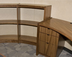 This shows the drawer bank and bookcase with the curved construction.