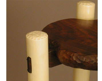 Legs to look like Elephant Tusks, top made with Claro Walnut with chip carved edges.