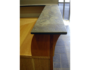 Community Reception Deskwood:Cherry and Slate description:Made in the Arts & Crafts style. The transaction top is black slate, honed and slightly textured. |