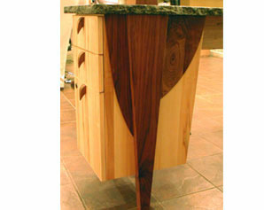 Salon StationWoodWormy Maple, with Walnut accent and granite counters. descriptionAn opportunity to create contemporary look for a Hair Salon. |